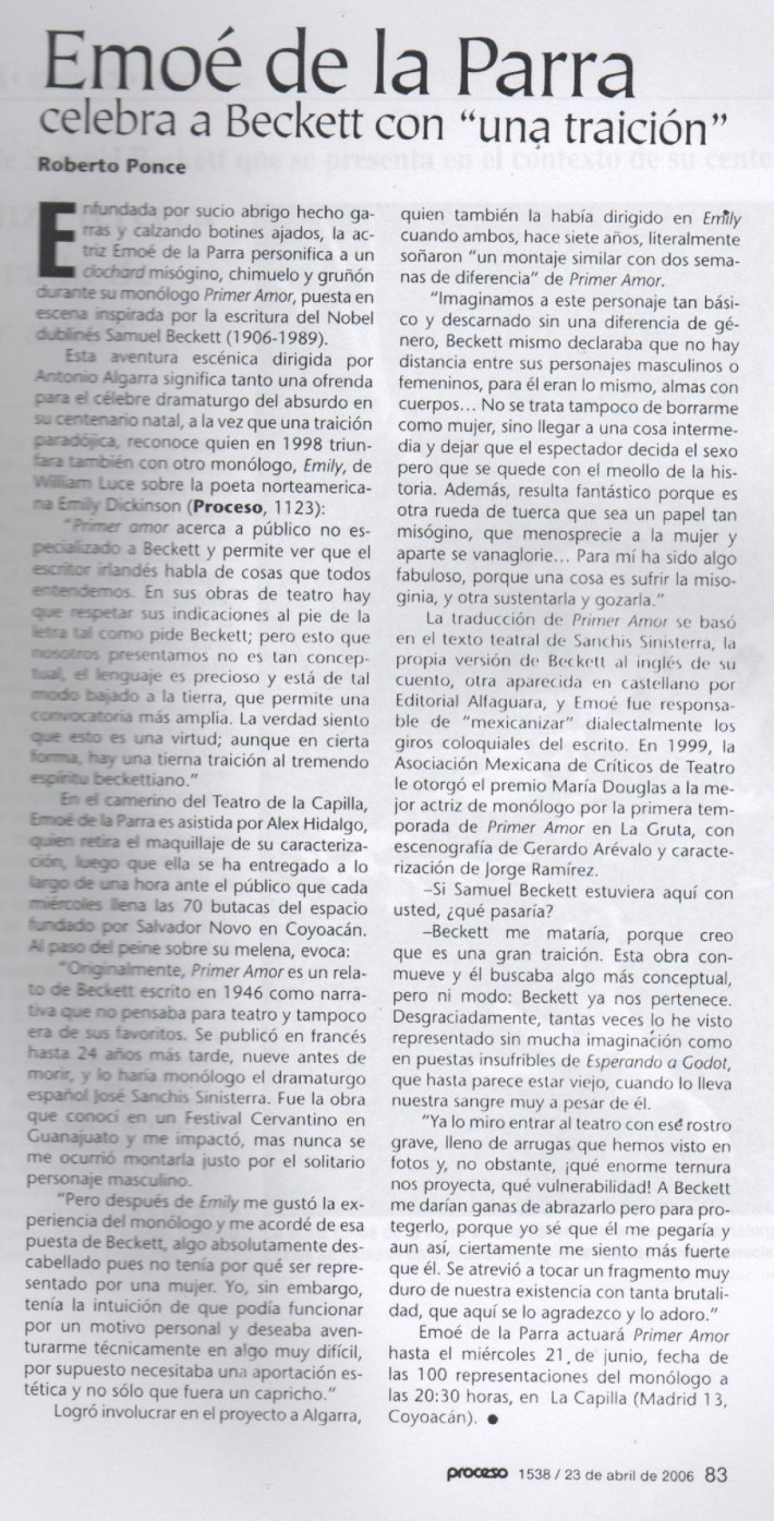 Emoé de la Parra celebra a Beckett